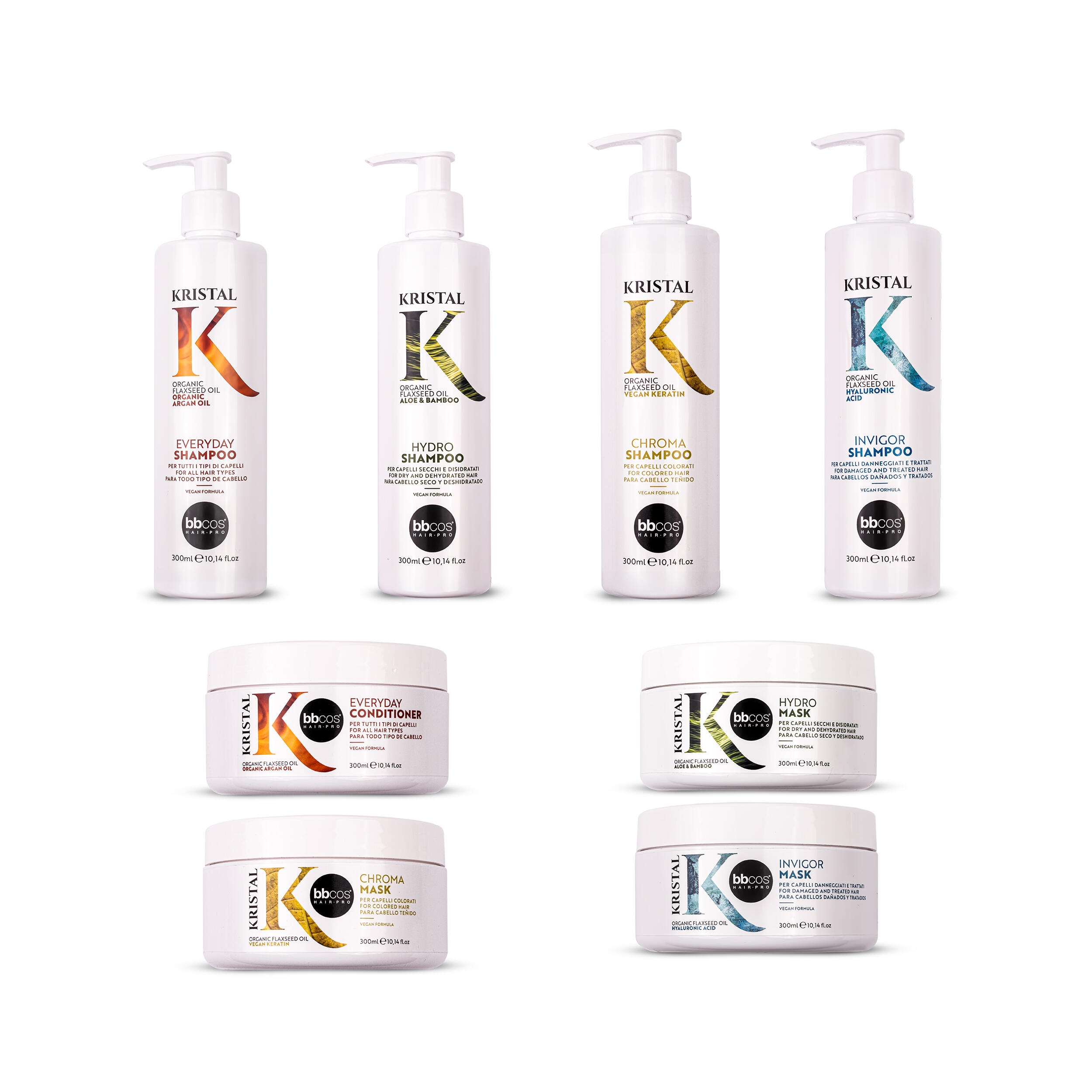 KRISTAL wurde entwickelt, um sowohl die Salonrituale als auch die tägliche Pflege zu Hause zu begleiten. Sie besteht aus vier speziell abgestimmten Pflegebereiche.